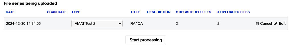 Once file series have been uploaded they will be displayed below the upload control.