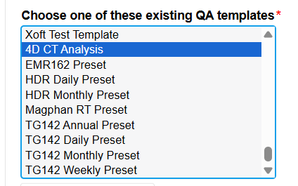 In the Add QA Schedule Page, select the 4D CT Analysis template.