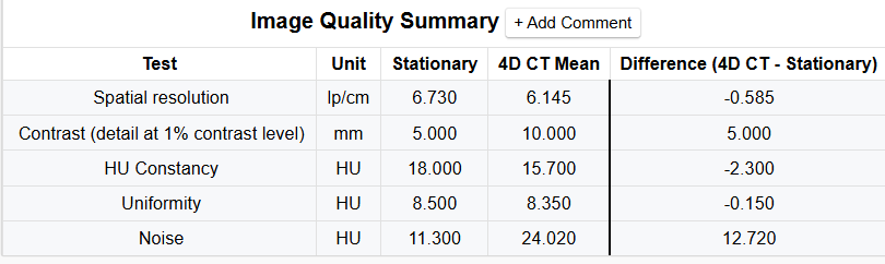 - 4D CT Mean: The mean value of the test for all the phased image series.