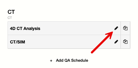 To set up a 4D CT Analysis schedule, click on Manage > Schedule Configurations and then + Add QA Schedule on the machine that you wish to add the schedule to.