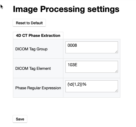 There are no specific phase or bin tags in the DICOM headers for the CT images, so they must be extracted from other tags. This is customizable in the software. Click on Manage and navigate to the Configurations settings page, and then click to edit the schedule.